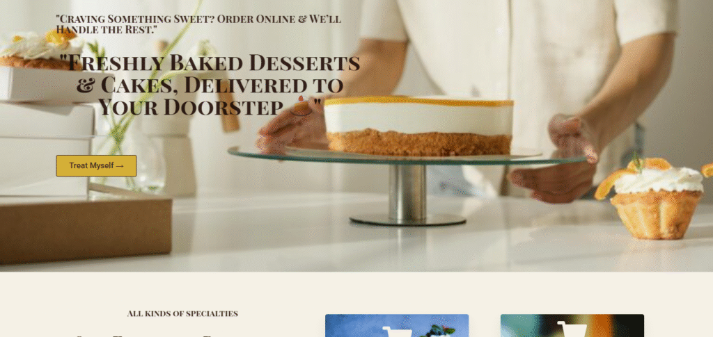 Design a simple, engaging landing page for a local bakery to: