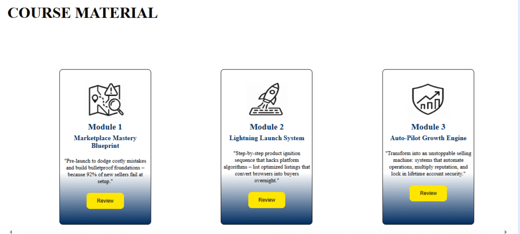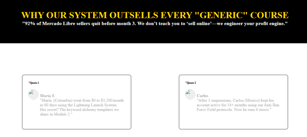 ) with keyword-rich alt text.Proper use of H1 and H2 tags optimized for search queries like “Mercado Libre course” and “how to sell on Mercado Libre.”